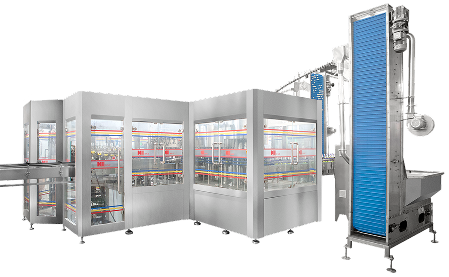 A mechanical gravity filling machine, for PET bottles, designed for cold and hot filling of non-carbonated products.